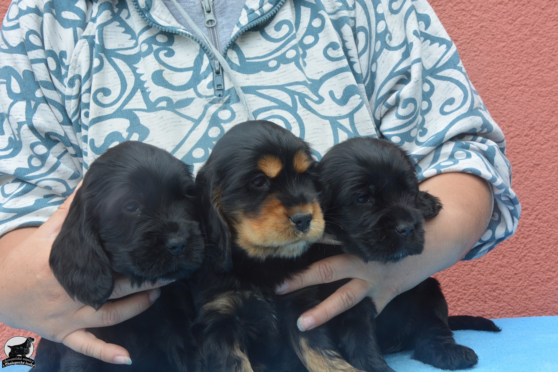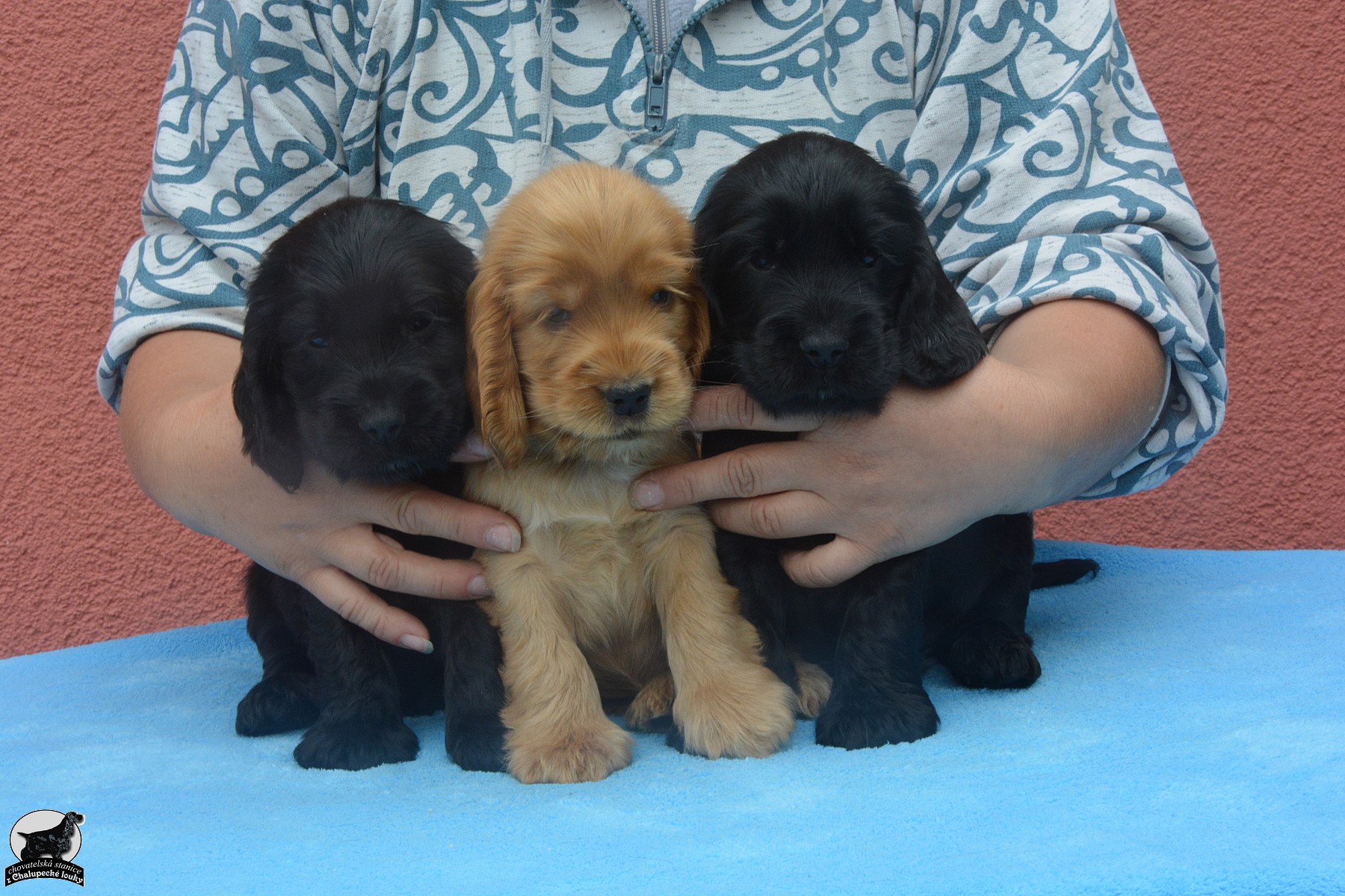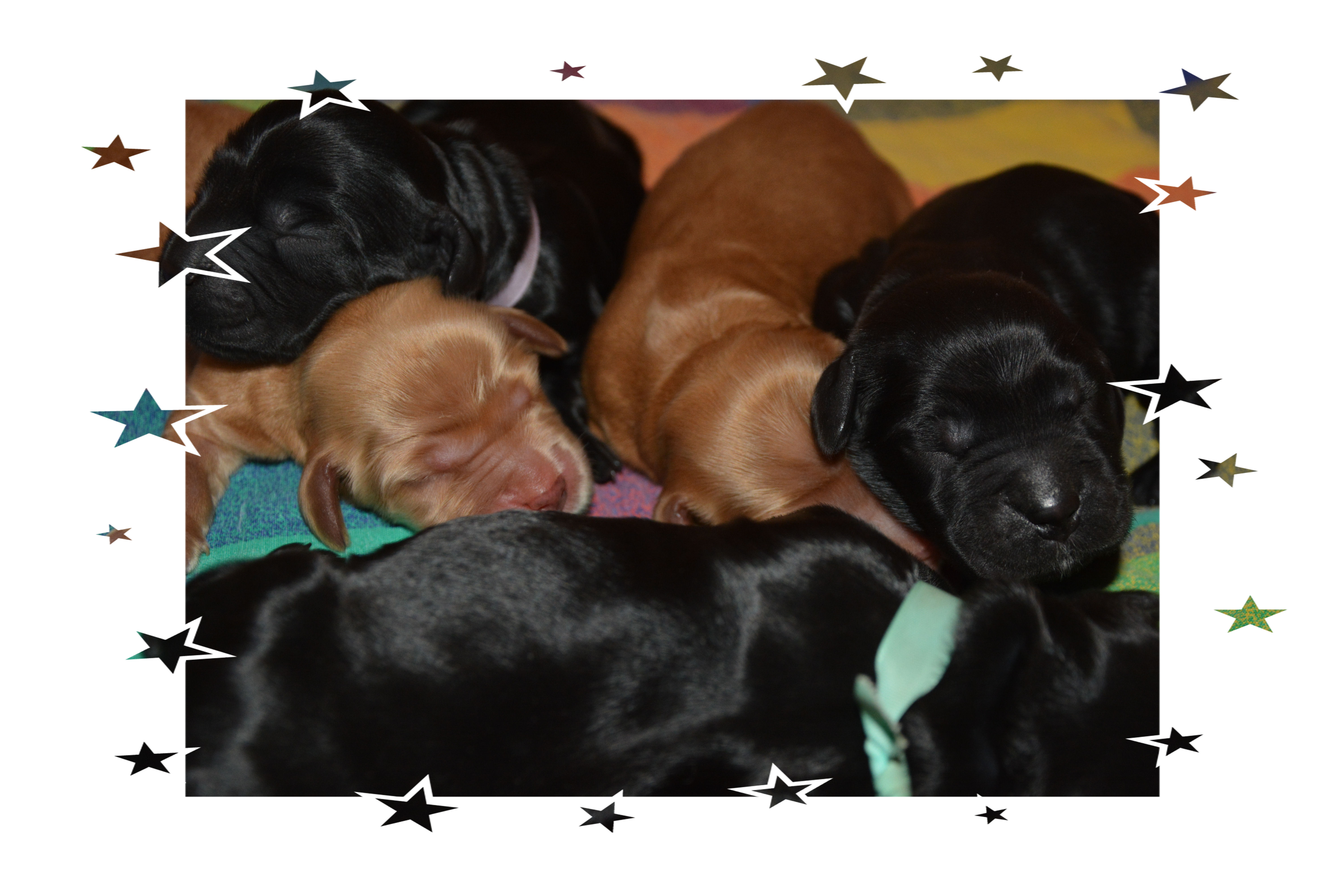 3 černí a 2 zlatý kluci, 2 zlaté a černá fenka // 3 black and 2 gold boys , 2 gold and black bitch